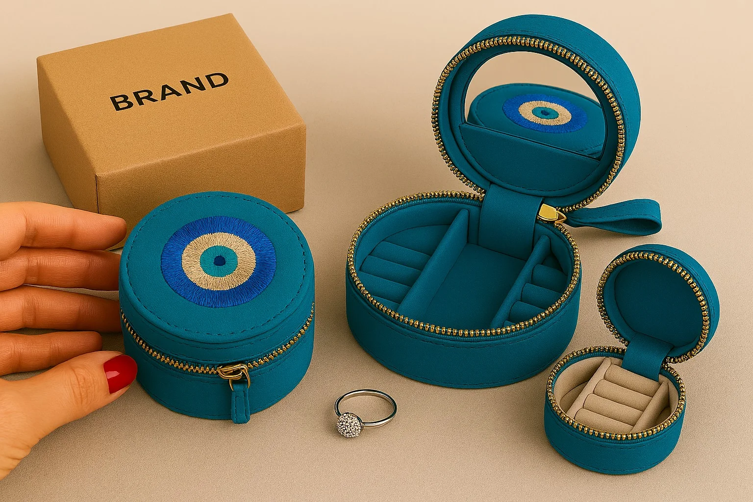 - Design Flexibility: We craft various forms, from compact custom cosmetic pouches to structured jewelry cases and wallets, to meet your specific product and marketing requirements.